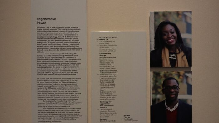 Londinesi nati in Nigeria nel 1985, compagni di vita e di professione, Tara e Lanre Seun Gbolade con la loro installazione “Regenerative Power” del Gbolade Design Studio nella sezione “Dangerous liaisons” all’Arsenale di Venezia mostrano attraverso immagini, pannelli, foto, video, la comunità londinese di Brixton, originaria dei Caraibi e delle Indie occidentali che arrivò nel dopoguerra dal Regno Unito: comunità che servivano come manodopera eppure hanno conosciuto sulla propria pelle il razzismo, la discriminazione, l’ingiustizia sociale. Piante maligne che Tara e Lanre Seun Gbolade cercano di estirpare con una pratica retta da un forte pensiero etico indirizzato alla vita collettiva. Ecco cosa hanno detto a “Globalist”.