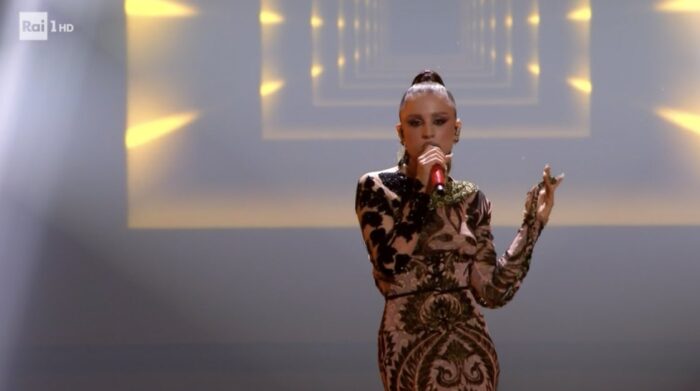ANGELINA MANGO: Etro ha realizzato per lei un look in esclusiva che si distingue dai soliti completi visti fino ad ora. I colori principali del lungo vestito sono il marrone e il verde, vestito accompagnato da una cordicella usata come oggetto di scena durante l’esibizione de “La noia”. Outfit che non la valorizza ma ci vuole coraggio nell’essere estrosi su un palco tradizionale come quello di Sanremo.