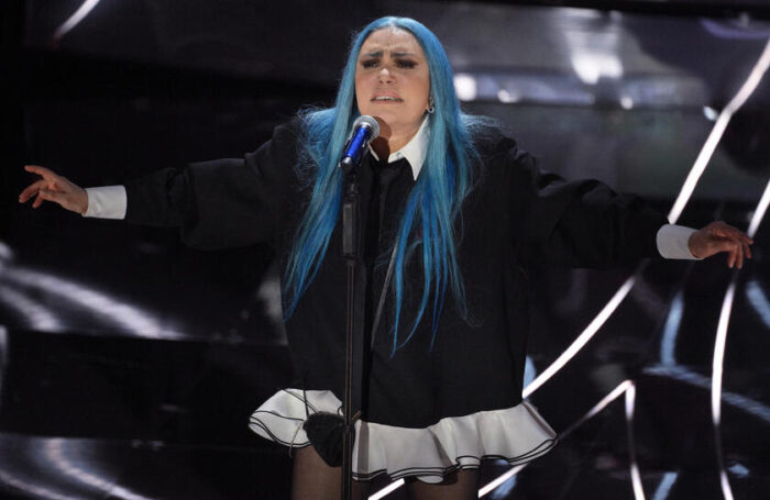 LOREDANA BERTE’: “Io sono pazza di me” e noi di te. Loredana Bertè con outfit giovanile e allo stesso tempo, ribelle, della stylist Susanna Ausoni colpisce l’Ariston con un brano che rappresenta lei al 100%.