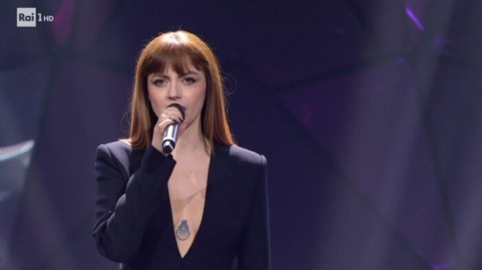 ANNALISA: Entra sull’Ariston con un look audace. La stylist Susanna Ausoni ha scelto per lei un minidress con uno scollo pronunciato che lascia intravedere un tatuaggio. A completare il tutto autoreggenti in tinta con l’abito nero. Lei colpisce, l’abito no.