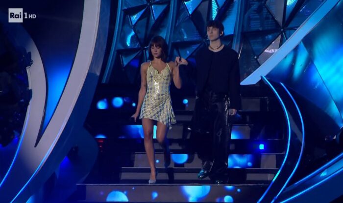 Gazzelle con Fulminacci: Sembrano due ragazzi di 18 anni, pronti alla maturità. ‘Dolcezza’ è la parola perfetta per descriverli in questa esibizione. Tuttavia va sottolineato che i due non sono abbinati tra loro. Gazzelle con una giacca sui toni del salmone mentre Fulminacci in nero.