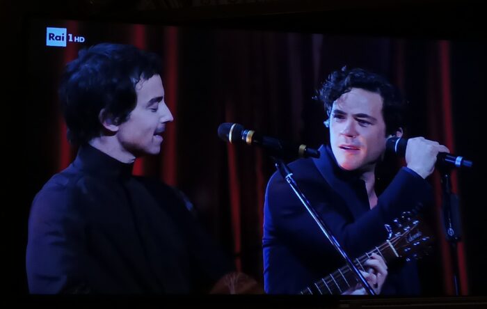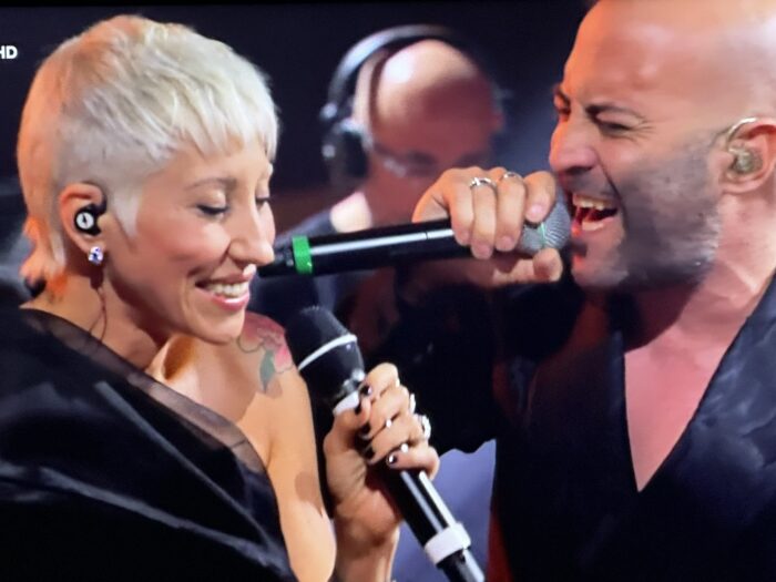 Negramaro con Malika Ayane: Le migliori voci del panorama della musica italiano hanno dominato il palcoscenico. Outfit che purtroppo non colpiscono come le loro voci. Malika Ayane e Giuliano Sangiorgi scelgono il classico.