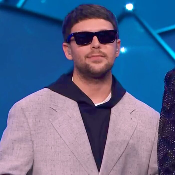 GAZZELLE: Stasera sorprende anche Gazzelle, sempre rimanendo nel suo stile. Giacca grigia sartoriale sopra la sua solita felpa, che non può mai mancare. Non possiamo che non amarlo.