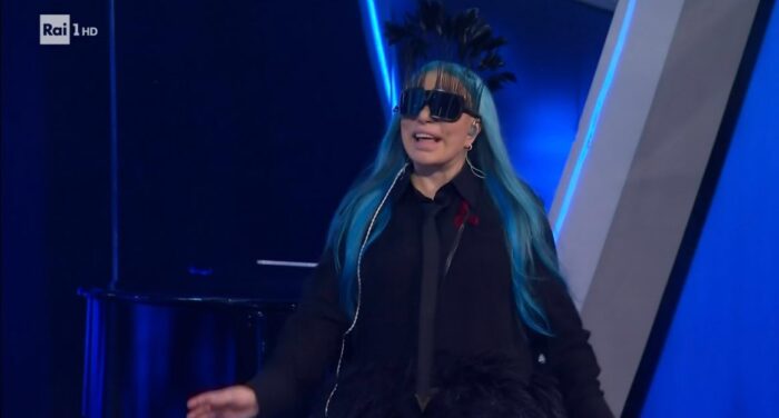 LOREDANA BERTÈ: Loredana Bertè unica regina di questa edizione. In un total black che non passa inosservato, partendo dagli occhialo con le piume, ovviamente riprese anche nella gonna.