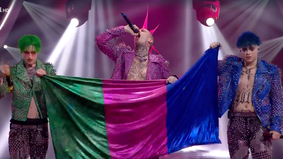 È verde, rosa e blu, come i loro outfit, la bandiera esposta dai La Sad al termine della loro performance.