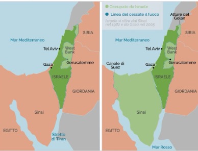 Mappa di Israele prima e dopo la guerra dei sei giorni 1967 (Fonte Ispi)
