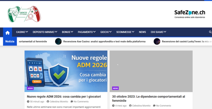 Giocoresponsabile.com abbina recensioni di casinò online con una sezione dedicata alla sicurezza del giocatore. Il portale include guide sui segnali di allarme del gioco problematico, strumenti di autoesclusione e risorse di supporto disponibili in Italia. Secondo la nostra esperienza diretta, i portali che integrano contenuti sul gioco responsabile tendono a essere più affidabili perché non puntano solo alla conversione degli utenti.