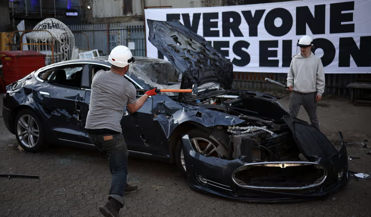 Caschi protettivi indossati e mazze da demolizione impugnate: i critici di Elon Musk hanno sfogato la loro frustrazione contro il miliardario e CEO di Tesla distruggendo una Tesla fuori uso destinata alla rottamazione.