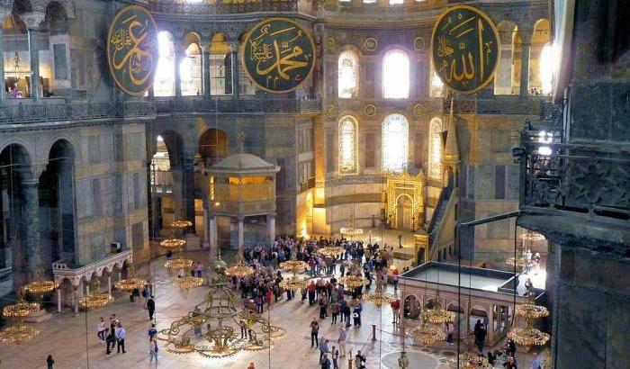 Il “Sultano” di Ankara e il “vassallo” di Roma. Ovvero, come si rimedia l’ennesima figuraccia internazionale. Il mondo assiste con preoccupazione alla incontenibile deriva islamonazionalista della Turchia, ma una tale preoccupazione non sembra minimamente albergare in Giuseppe Conte. Probabilmente il suo onnipresente portavoce, Rocco Casalino, non ha avuto tempo, in altre faccende personali affaccendato, per informare il presidente del Consiglio dell’esibizione del presidente-padrone della Turchia, Recep Tayyp Erdogan, venerdì scorso a Santa Sofia, trasformata in una moschea, nonostante le proteste dell’Unesco, di Papa Francesco e di altre personalità impegnate nel dialogo interreligioso. Ora, delle due, l’una: o non era stato informato o al nostro premier di questa vicenda non frega nulla. A testimoniarlo è quanto accaduto ieri.