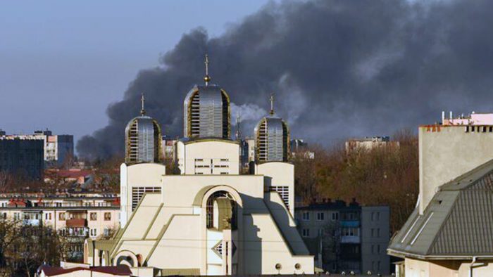 Alle prime ore dell’alba si sono avvertite almeno tre forti esplosioni nella zona circostante all’aeroporto civile di Leopoli, in Ucraina. L’offensiva russa, anticipata dal suolo delle sirene, ha provocato una grande colonna di fumo come dimostrano alcune foto circolate sui canali social.