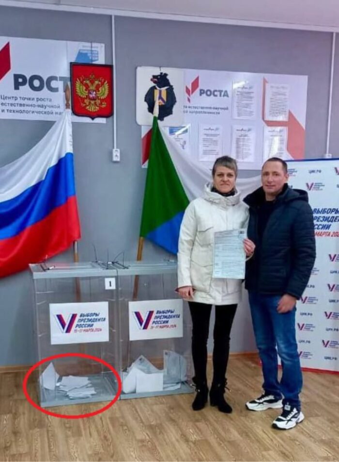 Dalla Russia, a valanga, arrivano i motivi di sospetto sulla regolarità di voto. Come in questa foto, da un seggio di Khorsky.
