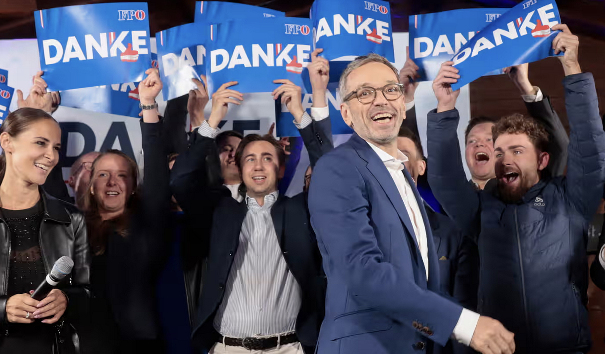 L’estrema destra ha ottenuto il maggior numero di voti in un’elezione austriaca per la prima volta dall’era nazista domenica, mentre il partito della libertà (FPÖ) cavalcava l’ondata di rabbia pubblica per l’immigrazione e il costo della vita per battere il partito popolare di centro-destra (ÖVP).